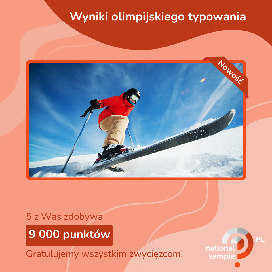 Do tegorocznego konkursu zgadywania, który przygotowaliśmy dla Was z okazji Zimowych Igrzysk Olimpijskich we Włoszech, dołączyło aż 54 929 członków National Sample ze wszystkich 8 krajów, w których działamy. Łącznie 1 058 z nich przesłało nam prawidłową odpowiedź i zostało zakwalifikowanych do losowania nagrody pieniężnej.